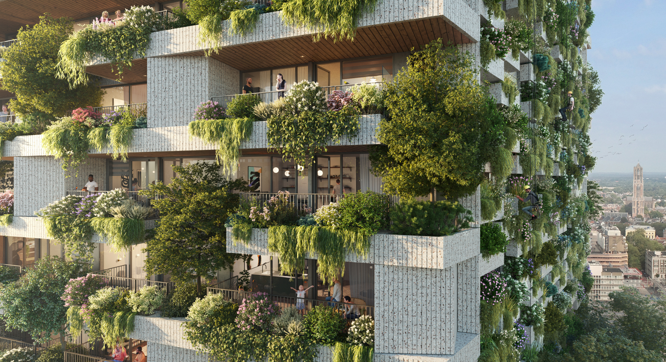 Wonderwoods is een iconisch project. Een plek om je continu te laten verbazen. Waar anders komt de tuinman abseilen om de bomen en struiken op jouw balkon te verzorgen? En dat met alle handigheid en charme van het centrum van Utrecht nabij.